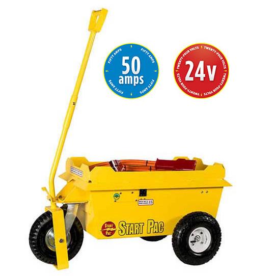 With its high battery capacity (84Ah) and its integrated 58A power supply, this full 24V mobile START PAC® is ideal for starting multiple aircraft and powering up the cockpit for training, maintenance or software downloads. It can be used in remote locations using battery power alone and give extended time for cockpit maintenance checkout. Its large battery capacity will allow extended usage time when no AC power source is available.