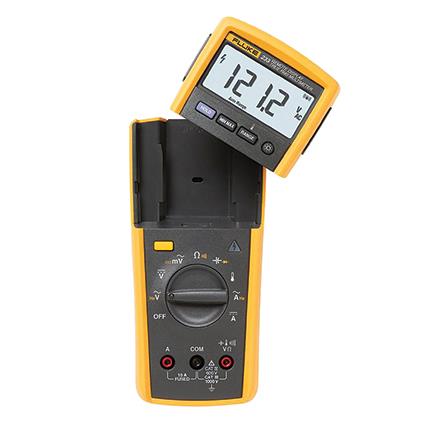 The Fluke 233 Digital Multimeter, with its removable display, gives users the flexibility to take measurements in hard to reach places or in areas with restricted access. Just connect the meter to the test point and then place the display in a location in-sight of up to 10 meters (33 ft.) away.