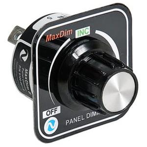 - Comes with MaxDim unit, installation instructions, spade or ring terminals, placard, installation template, and knob