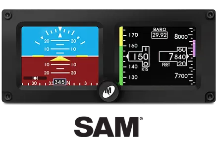 SAM® is the first — and only — digital standby to provide you with attitude, altitude, airspeed, slip, vertical trend and heading information in a flexible 2-inch format.