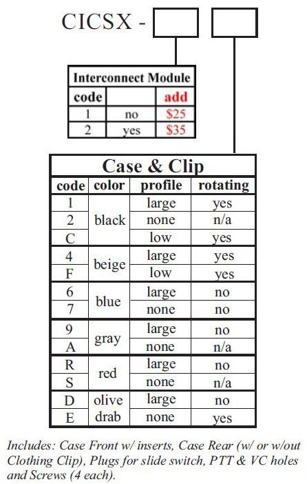 CICSX-11 Black Switch Case Assy with detachable rotating large clothing clip, includes plugs for volume control, ptt & slide switch openings as well as 4 screws.