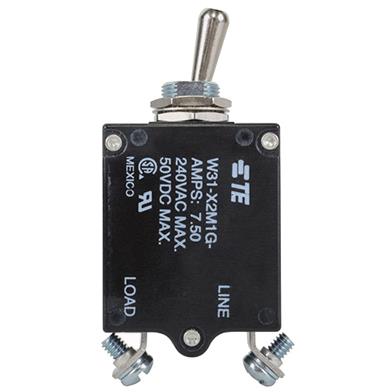 The W31 series are single pole, thermal circuit breakers with toggle actuator and series trip function. They are UL 1077 Recognized as Supplementary Protectors. File E69543, and CSA Accepted as Supplementary Protectors (Appliance Component Protectors), File LR15734.