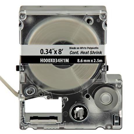 The Portable Printer continuous Heat Shrink Labels in White are made of Military-Grade Polyolefin. They measure 0.19" (4.7 mm) Diameter, 8' (2.4 m) Length, and 0.34" (8.6 mm) Width and have a wire range of 18–12 AWG. The Fast-Loading MP™ Label Cassette includes both Label Material and Ribbon for Easy Label Changing.