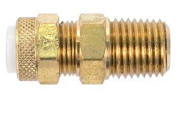 Poly-Type Flareless tube fittings have reduced a installation time when compared to regular compression or flare fittings -- just push in the tubing and tighten the nut. No wrenches, flaring tools, benders, or other tools needed for installations. Poly-Type fittings that are assembled finger tight on Poly-Type or PVC Tubing and will hold the tubing's burst pressure. To prevent twisting and weakening of the tubing during installation, the nut revolves around the sleeve as it is being tightened, which prevents torque from being transmitted to the tubing, to provide an excellent seal and ensure reliability. Poly-Type fittings can also be used with plastic or soft metal tubing for pneumatic instrumentation circuits and applications with other gases and liquids. Acetyl copolymer sleeves, PVC, or EVA tubing can also be used with Poly-Type fittings, while the universal brass sleeve and nut assemblies are for use with lmpolene, nylon, and soft metal tubing. The half-knurl/half-hex brass nut design provides the versatility, with the plastic sleeve, to quickly and easily finger tighten onto Poly-Type tubing, and the hex portion permits tightening with a wrench -- just one turn passed finger tight. It is recommended to tighten with a wrench for applications where brass sleeves are used and where service conditions require full pressure and capability of the tubing.