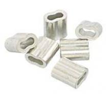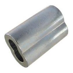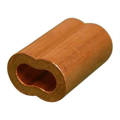 Oval shaped copper sleeves used in making eye or lap splices in flexible cable. Sleeves are slipped over the two strands of cable to be fastened and are then compressed with special Nicropress hand squeezers. Provides a bond that is even stronger than a standard splice. Plain copper and zinc coated sleeves are used with galvanized cable, and tin coated sleeves are to be used with stainless steel cable.
