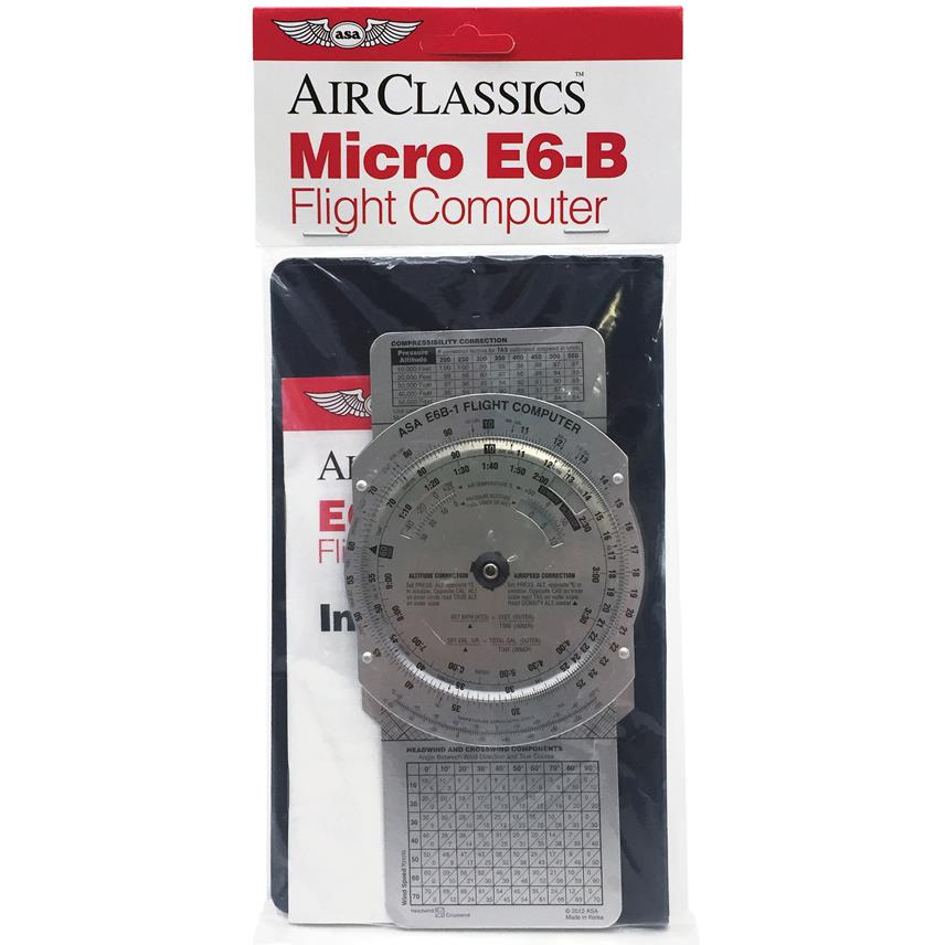 This pocket-sized, brushed aluminium E6-B is a full-function aviation computer. Popular among military pilots, it features a high-speed and low-speed wind correction slide, high-speed compressibility table, vinyl case, and instruction manual. Micro E6-B performs all the standard manual flight computer functions, and it conveniently fits in a shirt pocket or glove box. 6" x 3-1/2". Made in Korea.