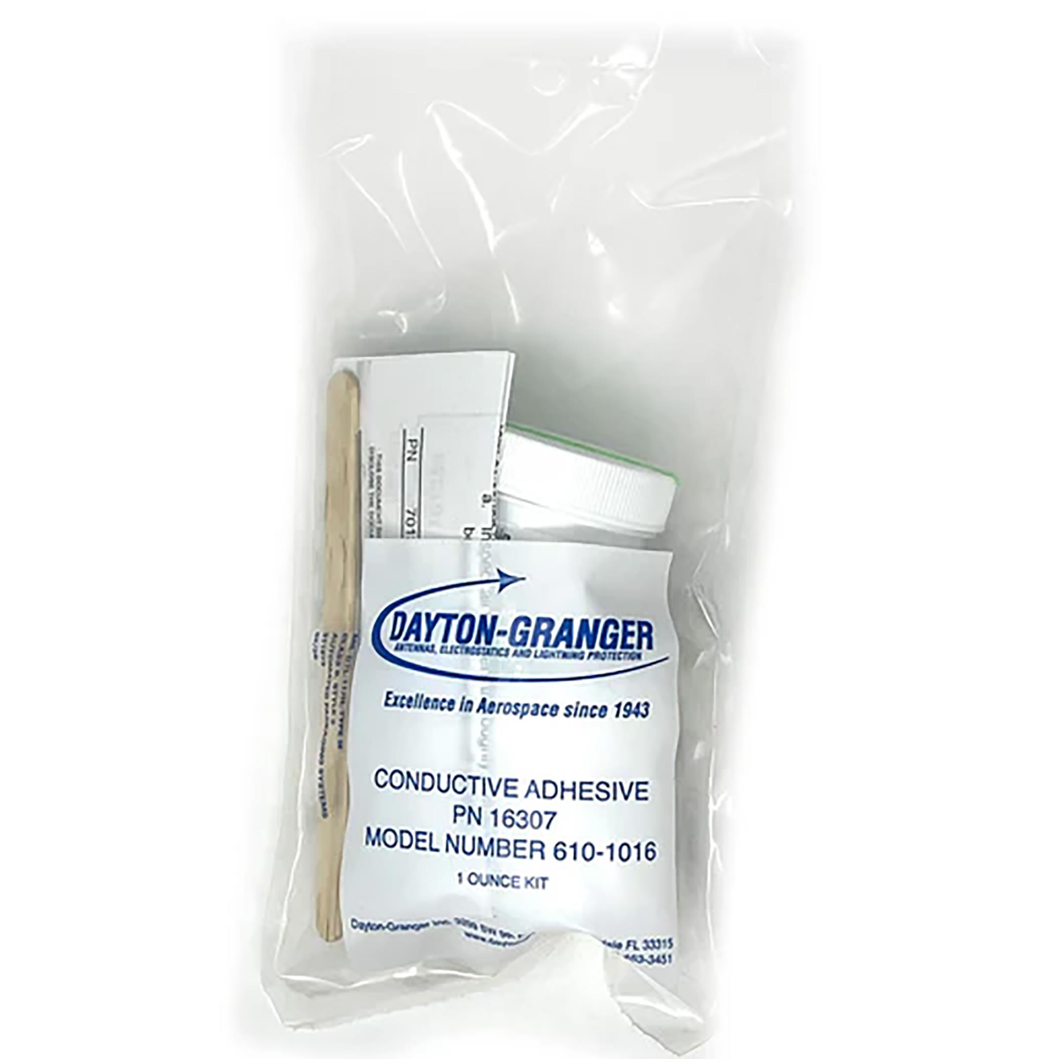 This adhesive is a special two-part silver-loaded conductive epoxy. The primary purpose of this conductive adhesive is to attach retainers where rivets and other fastening devices cannot be used, such as when retainers are mounted on honeycomb surfaces or on tip tanks. One epoxy kit contains enough material to mount approximately eight retainers.