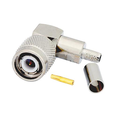 The PE4450 TNC, right angle, coaxial connector will interface with RG55, RG141, RG142, RG223, and RG400 cable types.