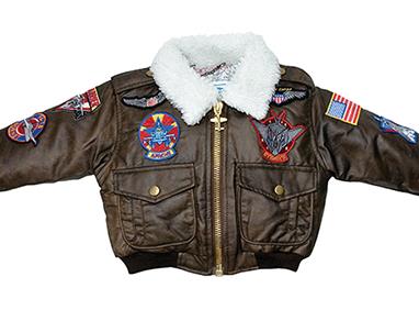 These kids' Bomber Jackets are a reproduction of a classic bomber, complete with simulated fleece collar. They are sturdily made with many special touches that make it unique, such as an airplane zipper pull, authentic aviation patches & colourful graphic map liner.