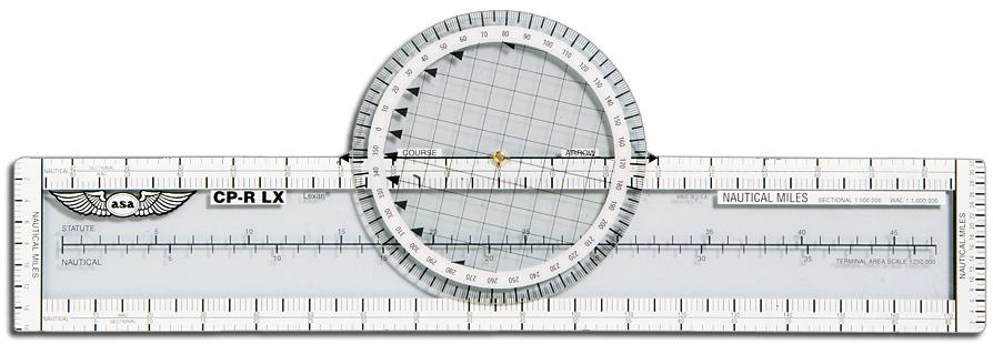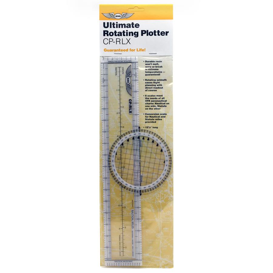 Durable resin won't melt, warp or break in extreme temperatures — guaranteed! Rotating azimuth eases flight planning with direct course readout. 8 scales to meet the needs of all VFR aeronautical charts; nautical on one side, statute on the flip. Nautical-statute conversion scale also included.