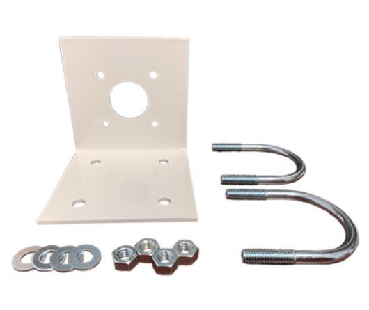 The L1/L2 roof top antenna mounting bracket consist of a mounting bracket with a cutout for routing the antenna cable, and hardware for mounting to a two-inch pole. This mounting kit is designed to facilitate the installation of the L1/L2GPSA-T or L1GPSA-N antenna.
