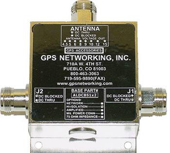 This amplified loaded DC blocked GPS splitter features one input and two output for spitting RF frequencies from 1.1 GHz — 1.7 GHz. It is designed to amplify and split the L-band frequency to multiple devices from a single antenna. In the standard configuration, the J1 port passes DC voltage from a connected device to the antenna or another device up from the splitter. The other port J2 is DC blocked and loaded with a 200Ω resistor to simulate antenna current draw which prevent alarm faults.