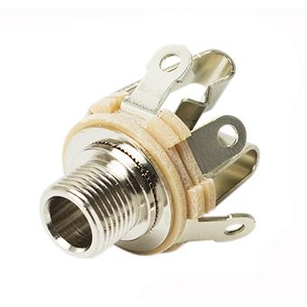 This 1/4-inch open frame jack has a 3-circuit stereo plug and 0.25 inch jack inside diameter. Supplied with one hex nut and one copper alloy washer.