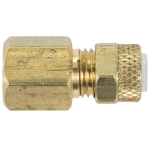 Poly-Type Flareless tube fittings have reduced a installation time when compared to regular compression or flare fittings -- just push in the tubing and tighten the nut. No wrenches, flaring tools, benders, or other tools needed for installations. Poly-Type fittings that are assembled finger tight on Poly-Type or PVC Tubing and will hold the tubing's burst pressure. To prevent twisting and weakening of the tubing during installation, the nut revolves around the sleeve as it is being tightened, which prevents torque from being transmitted to the tubing, to provide an excellent seal and ensure reliability. Poly-Type fittings can also be used with plastic or soft metal tubing for pneumatic instrumentation circuits and applications with other gases and liquids. Acetyl copolymer sleeves, PVC, or EVA tubing can also be used with Poly-Type fittings, while the universal brass sleeve and nut assemblies are for use with lmpolene, nylon, and soft metal tubing. The half-knurl/half-hex brass nut design provides the versatility, with the plastic sleeve, to quickly and easily finger tighten onto Poly-Type tubing, and the hex portion permits tightening with a wrench -- just one turn passed finger tight. It is recommended to tighten with a wrench for applications where brass sleeves are used and where service conditions require full pressure and capability of the tubing.