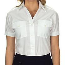 The aviator style dress shirt designed for pilots is wrinkle-free with a 65% polyester, 35% cotton blend. This classic button-down shirt provides comfort with a professional uniform appearance.