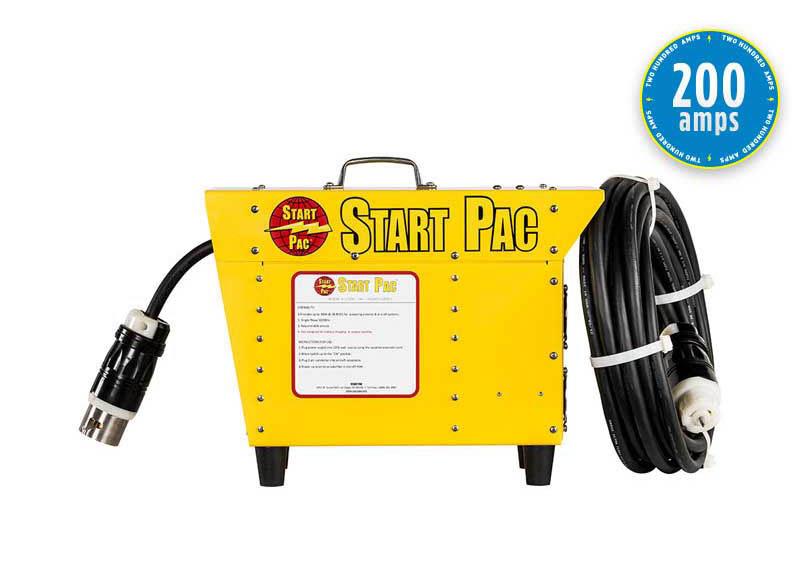 When plugged into 220Volt single-phase AC power, START PAC Model 53200 is a 28.5 Volt continuous DC power supply. This unit will deliver full 200 amp DC output, but it won't provide enough current for engine starting. This unit has been specifically designed for maintenance and to power up various functions, such as inverters, avionics, GPS and air conditioning.